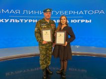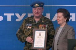 Кроме того, автор и исполнитель военно-патриотических песен, заведующий студией звукозаписи ГКЦ «Планета» г. Нягани, награжденный государственной наградой – медалью Жукова – Вячеслав Кулешов. поблагодарил Наталью Комарову за поддержку гражданско-патриотической работы, которая ведется в округе, и рассказал о своем опыте службе в горячих точках на территории Кавказа. В завершение выступления Вячеслав Кулешов исполнил для присутствующих в студии и для всей аудитории прямой линии губернатора одну из песен собственного сочинения – «Российский солдат».