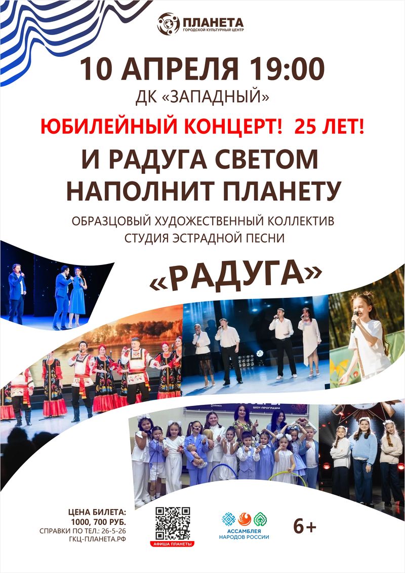Приглашаем на незабываемый юбилейный концерт образцового вокального коллектива «Студия эстрадной песни «Радуга», который отмечает 25 лет творческой деятельности!