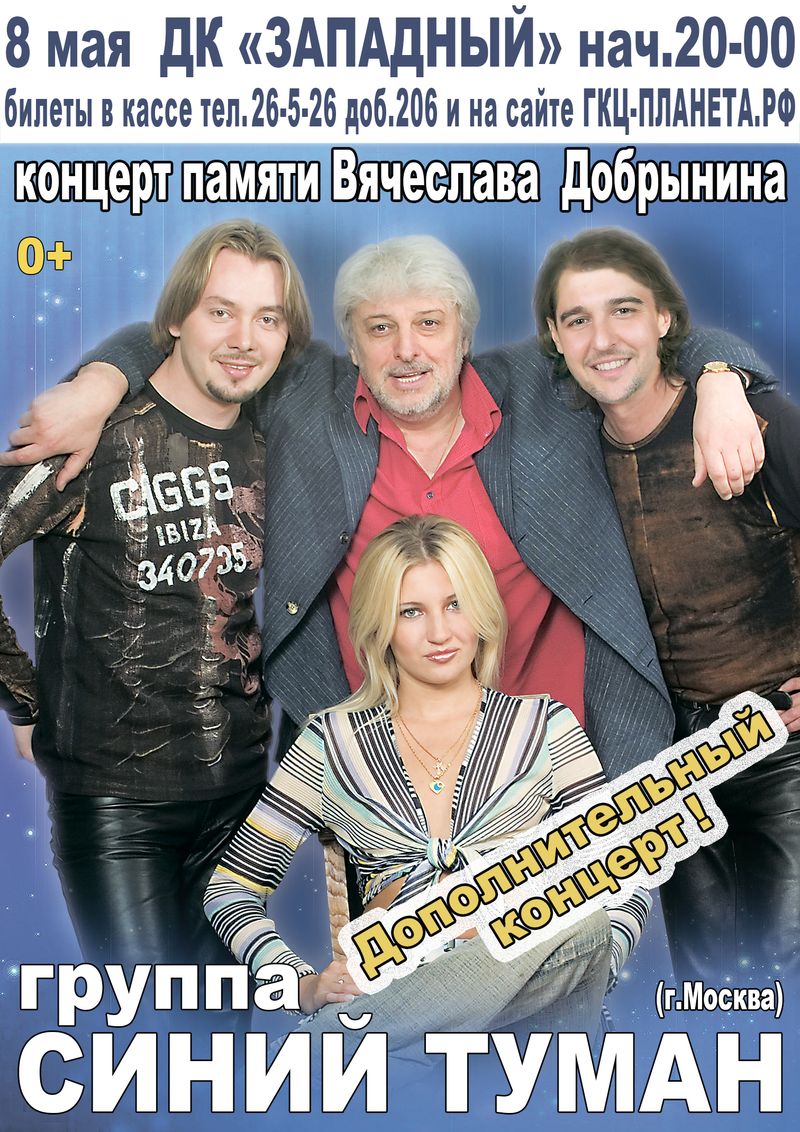 Впервые в Нягани состоится концерт легендарного московского ансамбля «СИНИЙ ТУМАН». В составе группы – артисты, много лет выступавшие в коллективе Вячеслава Добрынина.